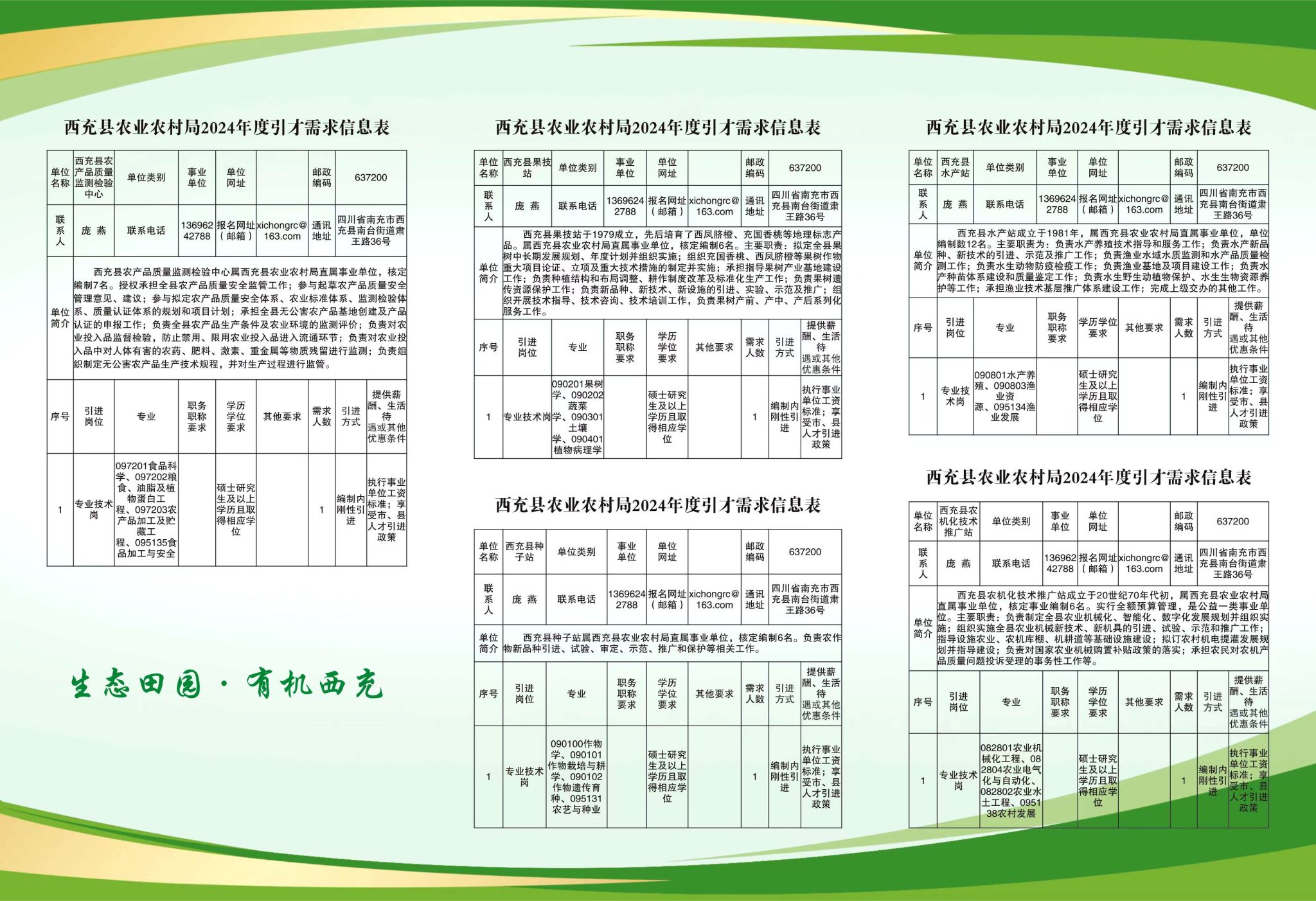 就业信息:西充县农业农村局2024年引才公告
