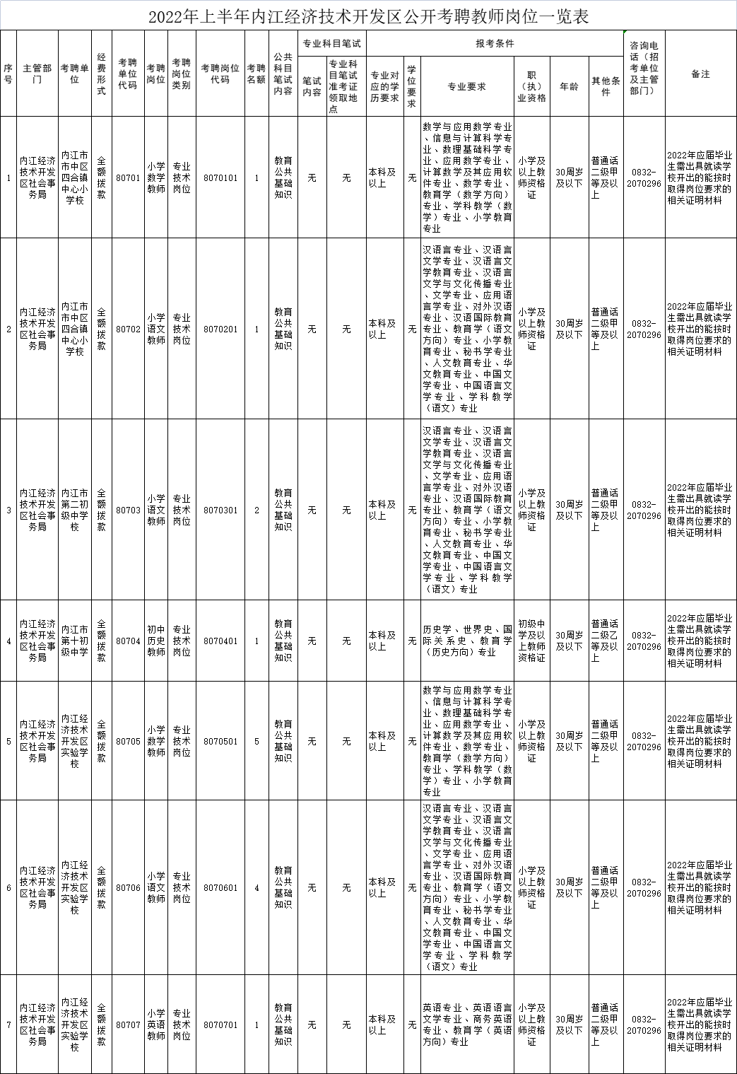 根据《事业单位人事管理条例》、《四川省事业单位工作人员招聘工作试行办法》(川人发〔2006〕9号)、《满冠体育_满冠体育(中国)官方网站进一步规范事业单位公开招聘工作的通知》(川人社发〔2011〕36号)及《事业单位公开招聘违纪违规行为处理规定》(人力资源和社会保障部令35号)等法规文件规定,按照“公开、平等、竞争、择优”的原则,2022年上半年内江市市中区将面向社会公开考聘中小学、幼儿园教师58名。经汇总考聘单位及主管部门意见后,现将有关事项集中公告如下: