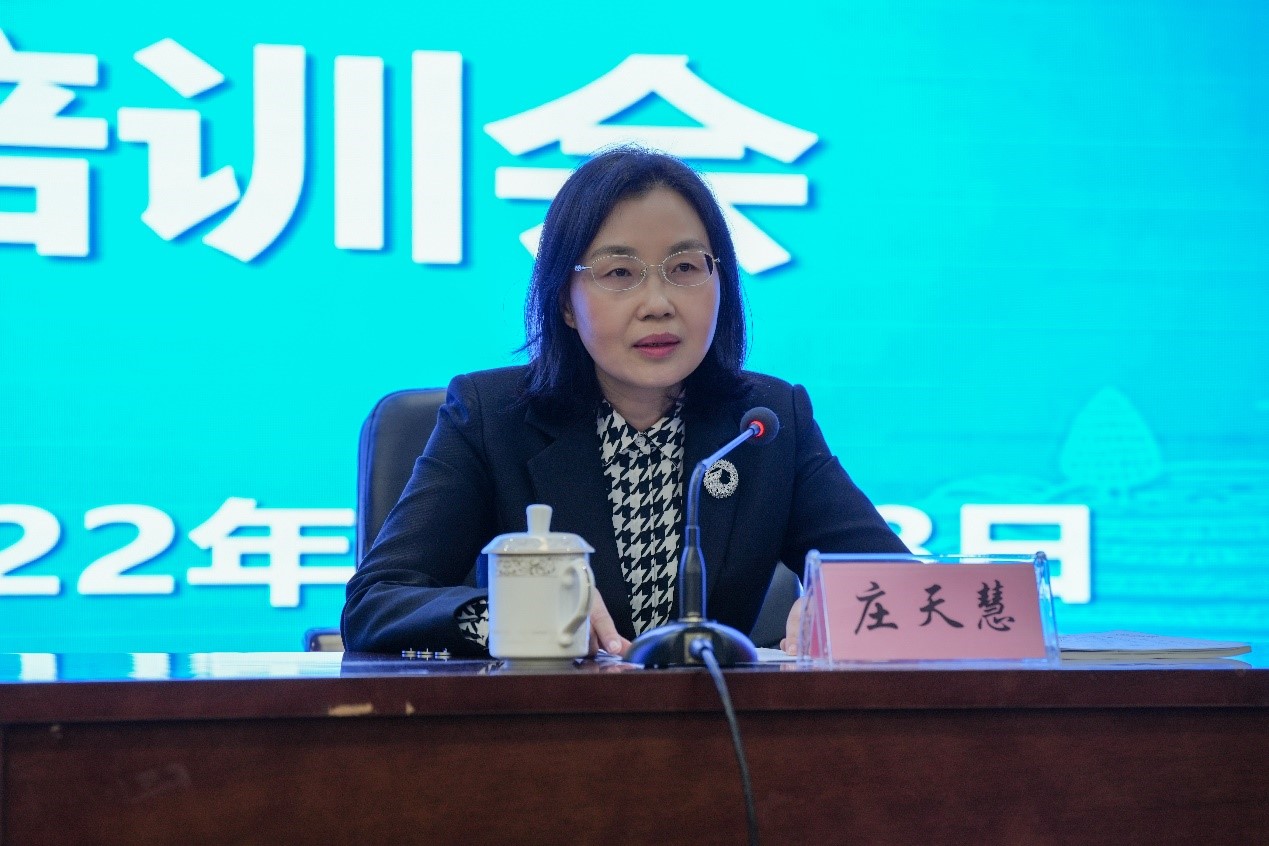 庄天慧首先强调了本次培训的意义和目的,从“使命、责任、目标”三个角度出发,指出提升研究生导师队伍水平、加强导师队伍建设是保证研究生教育高质量发展的重要保障。她结合党的二十大报告中加快建设教育强国、科技强国、人才强国等内容,强调研究生教育集高水平教育、科技创新、高层次人才为一体,是国之大者、校之大计,作为导师要肩负好为社会主义现代化强国建设培养高层次创新人才的光荣使命,肩负好为一流农业大学建设培养高层次人才,推进学科建设的光荣使命。导师是研究生培养的第一责任人,要尽职尽责,全情投入,从加强学生日常思想教育、严格专业能力培养、厚爱善待学生三方面入手,切实履行好岗位职责。要把立志做大先生作为职业理想和奋斗目标,力争人品优秀、学术优秀、育人优秀。希望大家成为有使命、肯担责、会育人的优秀导师。