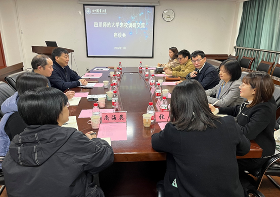 11月17日上午,四川师范大学研究生院院长雍彬一行来校交流研究生教育管理工作。研究生院院长李廷轩、研工部部长李武生、副院长何军和相关科室负责人参加交流。会议由院长李廷轩主持。