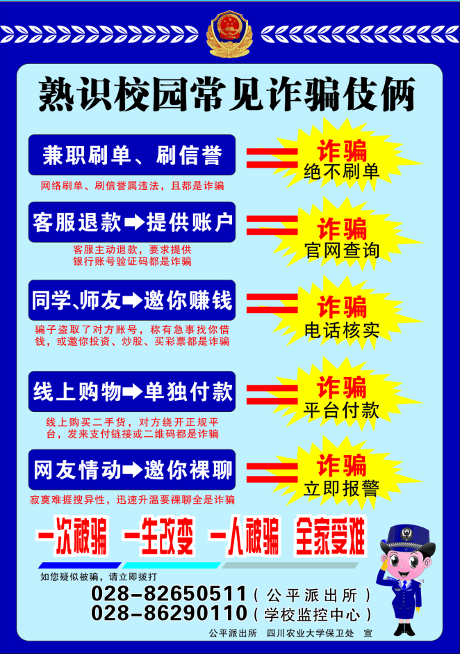 请各培养单位加强对研究生的安全意识教育,全体研究生务必保持头脑清醒、提高自我保护和防范意识,遇到可疑的人或事要冷静分析、仔细核实,不要轻信微信、电话、短信等渠道提供的各种信息,更不要轻易将个人隐私和财产信息向不相关的组织或个人透露,避免不必要的损失。建议手机安装“国家反诈中心”APP,用技术手段防范受骗,以实际行动保护自身财产安全和自觉维护社会和谐稳定。